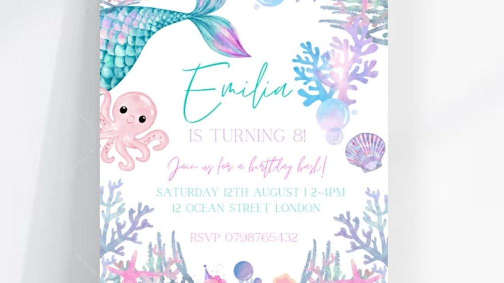 Mermaid Sea Theme for Girls, Party Digital Invitation Template
